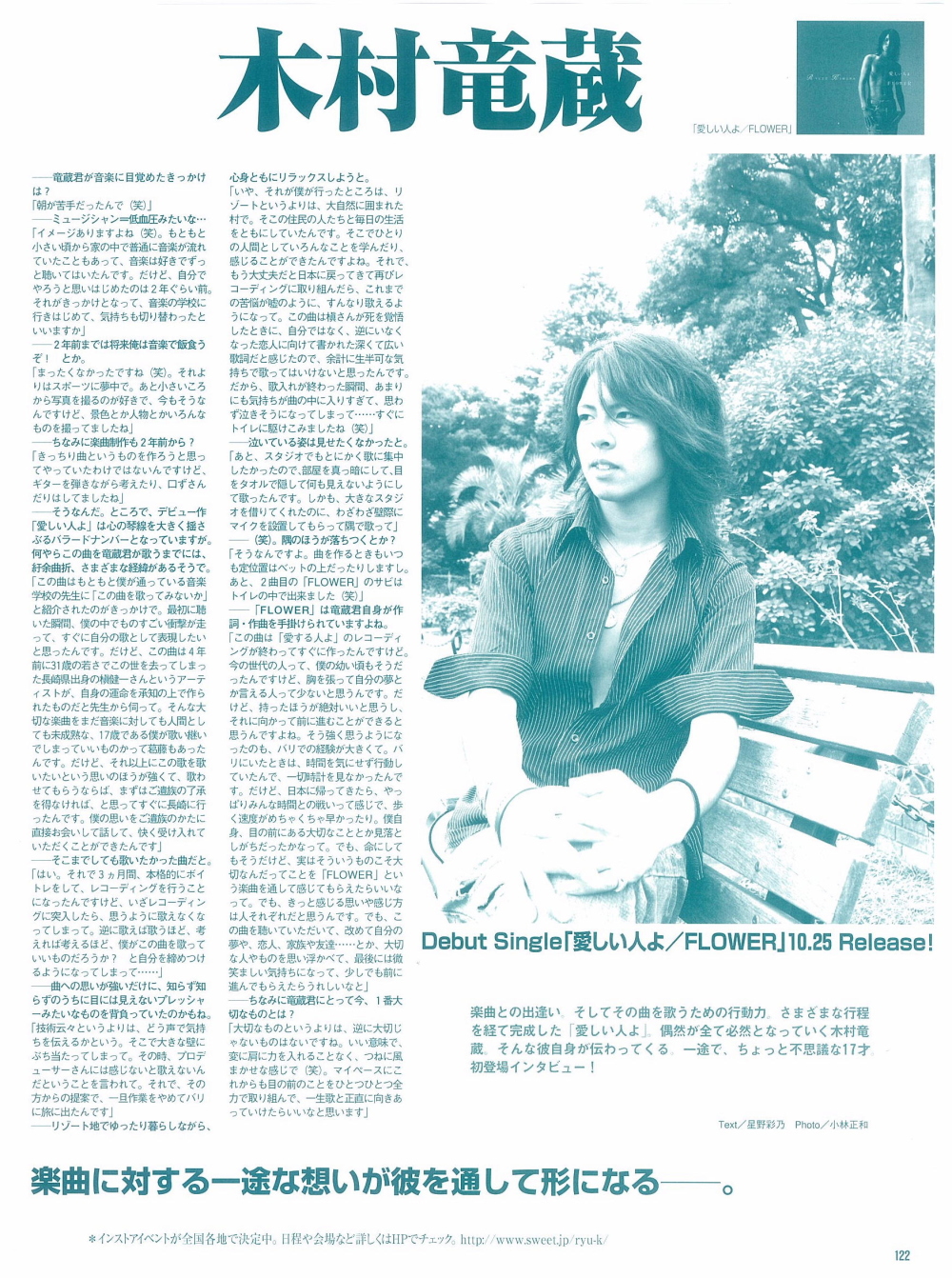 17才の新星シンガーソングライター《木村竜蔵》が 自身が感銘を受けた槙健一氏の名曲カバー「愛しい人よ」でデビュー 木村竜蔵 - official site - http://www.sweet.jp/ryu-k/